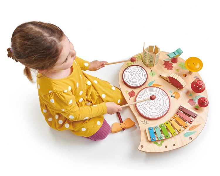 充滿自然元素的造型與森林場景呼應,開啟音樂感受力。孩子能自由操作,感受不同的音律。每塊區域擁有獨特的聲音,能引發孩子探索的好奇心。