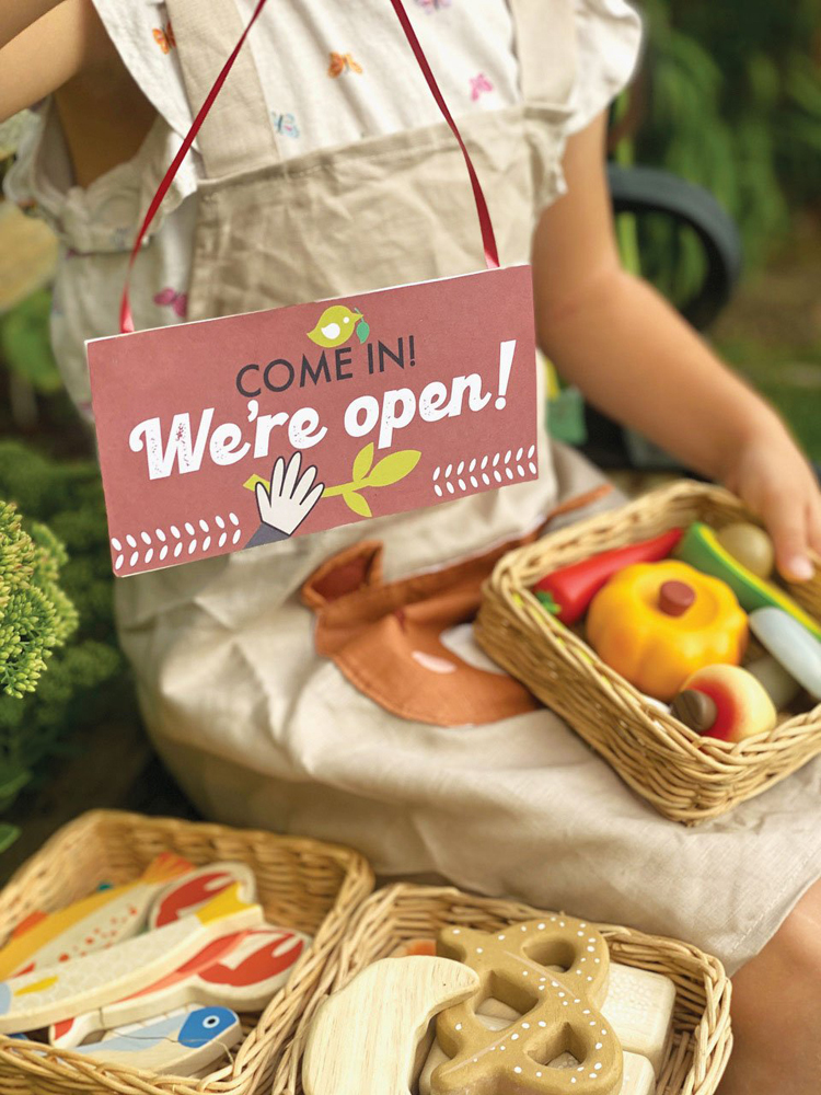 戴上廚師帽、穿上白圍裙,麵粉、糖、奶油準備好,烤個麵包讓大家吃飽飽!再運用點小巧思,香噴噴麵包坊就能開張啦!叮咚~歡迎光臨!牛角麵包30元、奶油餐包20元,都是剛出爐好滋味!一組籃內包括五種類常見麵包,除讓孩子學習物品名稱外,亦可教導各種食物不同的製作過程,讓寶貝知道食物來源,並學會珍惜食物。孩子可運用道具扮演各種角色,如烘焙師、麵包店老闆或顧客,從有趣的家家酒遊戲中學習社會化。