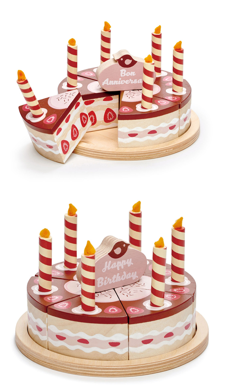 鬆軟的海綿蛋糕加上酸甜的草莓,一層一層堆疊而上,就像我對您的愛。 蠟燭可拆,再插入;不織布的燭火設計,生動活潑。 圓形底座加厚,堅固耐玩,可將切塊的蛋糕收納成完整的圓。