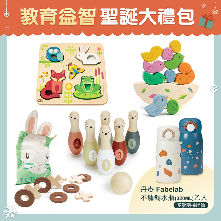 趣味小鳥保齡球+小兔圈叉遊戲組+鳥巢平衡疊疊樂+動物森林益智拼圖