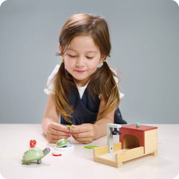 2隻小貓,黑色和薑黃色,牠們有一張遊戲跳台和球,可以自娛自樂。2個不同顏色的碗,每個碗裡有一條魚作為晚餐!適用於所有的木製娃娃屋,比例為1:12。