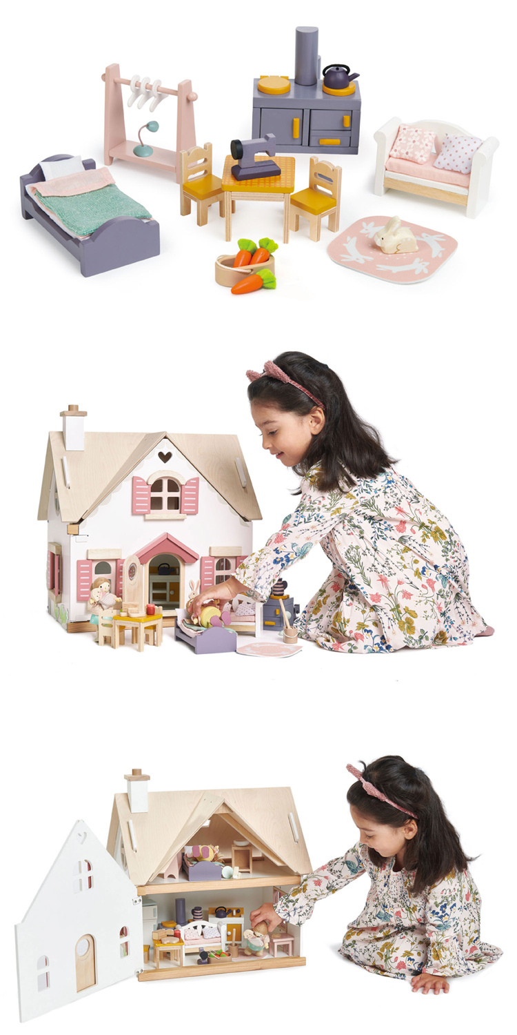 Cottontail Cottage 棉尾兔溫馨小屋是兔子主題,因爲兔子尾巴像棉花所以名字取cottontail (棉花尾),房子正面及家具配件都有兔子。《榮獲》良好玩具指南推薦!