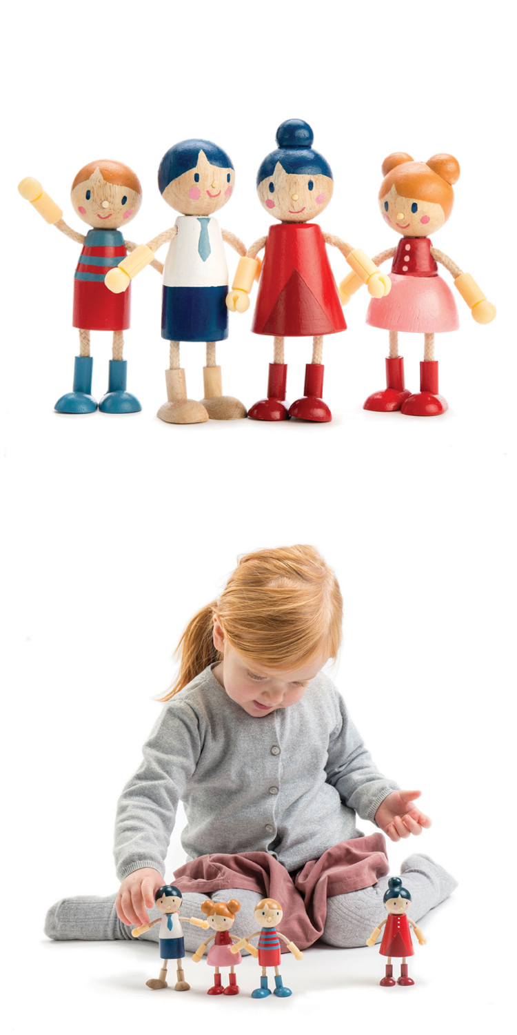 內含一家四口的鮮明角色:爸爸、媽媽、小男孩和小女孩。透過角色扮演,滿足孩子模仿的好奇心,促進語言發展與溝通能力。有利於創意發想,同時整合邏輯思考以及語言溝通。父母一同遊戲,角色替換,聆聽彼此的聲音,於生活中相互體諒。