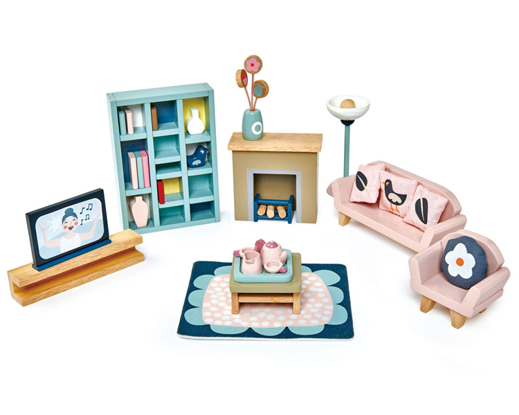 內含豐富的起居室配件:電視、書架、沙發等,還有精緻的茶杯組,提供多樣化的選擇。透過扮家家酒中的角色扮演(role-play),來滿足孩子角色模仿的好奇心。有利於創意發想,同時整合邏輯思考以及語言溝通。