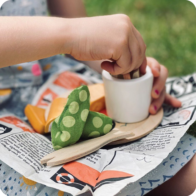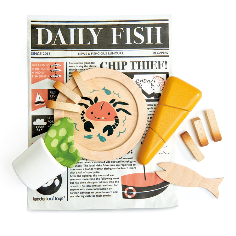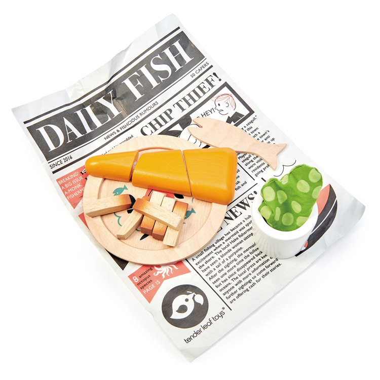 認識英式傳統的海濱料理:炸魚和薯條,還有豌豆泥!豐富的配件:海蟹圖案的盤子,魚叉,盛豆泥的杯子,全部包裹在《每日魚》報紙上!每一個積木都細膩呈現生活文化的特質,引導小朋友體驗不同區域的美食淵源。
