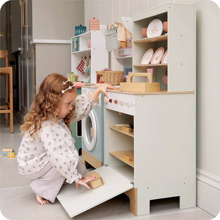 Tender Leaf 廚房系列的新成員-Tender Leaf 洗碗機。這款餐櫥櫃風格的洗碗機,搭配兩個可用來擺放杯盤的可拉式抽屜,以及一個餐具托盤。前開式拉門內側貼心設計了附蓋的洗碗錠專用槽。