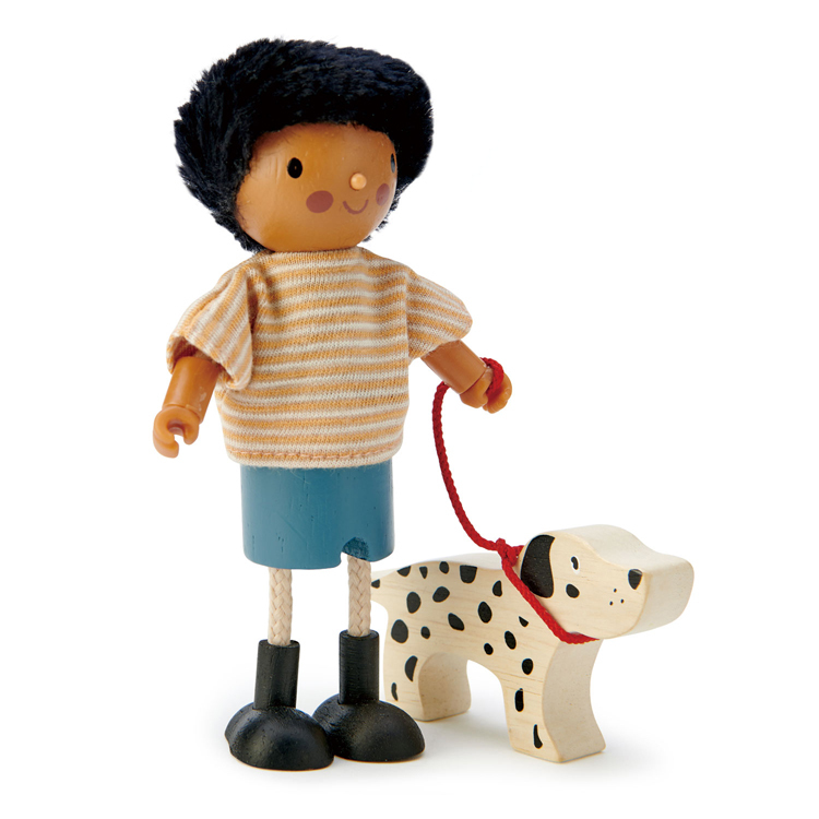 人偶四肢靈活,或站或坐,可任意擺動姿勢。透過角色扮演,滿足孩子模仿的好奇心,促進語言發展與溝通能力。遊戲中融入生活情境,牽著寵物狗兒大麥町,幫助孩子認識家庭成員,逐步培育良好的家庭觀念。家人可一同遊戲、角色替換,聆聽彼此的聲音,生活中相互體諒。