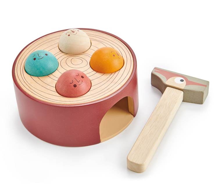 這是一款時尚的錘打遊戲,適合喜歡敲東敲西的活躍幼兒。以樹幹為基礎,用啄木鳥式的錘子敲打四個球。