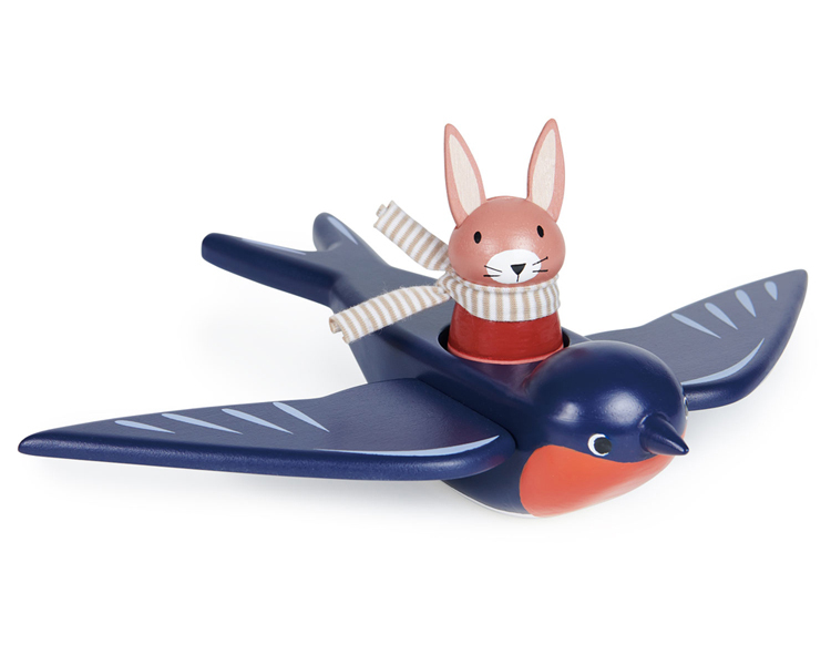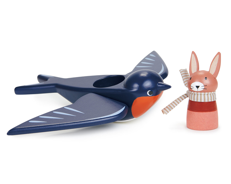 在我們的梅里伍德村莊上空高高飛翔的是飛行員野兔史柏德 Spud,由他最好的飛燕朋友史威夫 Swifty 攜帶飛行。小兔子是可拆卸的,牠繫著一條布質圍巾,底部有寫著牠的名字。