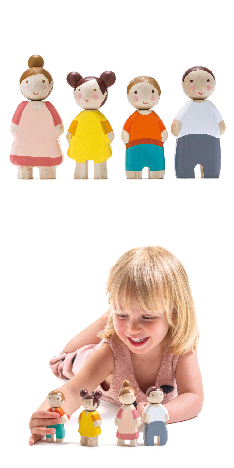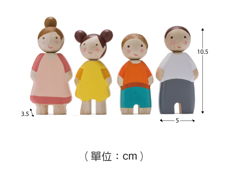 內含一家四口的鮮明角色:爸爸、媽媽、小男孩和小女孩。透過角色扮演,滿足孩子模仿的好奇心,促進語言發展與溝通能力。有利於創意發想,同時整合邏輯思考以及語言溝通。父母一同遊戲,角色替換,聆聽彼此的聲音,於生活中相互體諒。