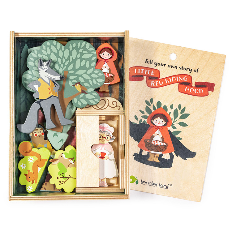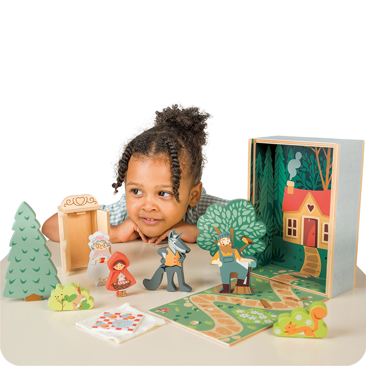 這款精緻的童話創作組-小紅帽使用滑動式頂蓋,拉開後即可揭開隱藏的森林場景;將蓋子翻過來,背面就變成了森林地面。跟著小徑走,深入森林探訪那座小木屋。創作組內含2棵樹、2隻森林小動物,以及小紅帽、奶奶、樵夫和大野狼,他們可以在這個場景中自由穿梭,編織任何故事。